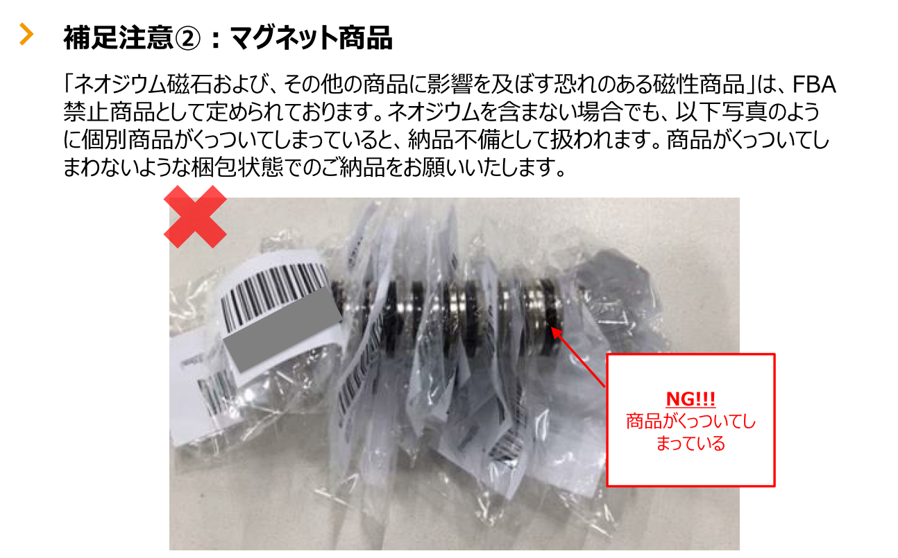 前回、磁石が入った商品をそのまま納品したら、納品不備になりました。