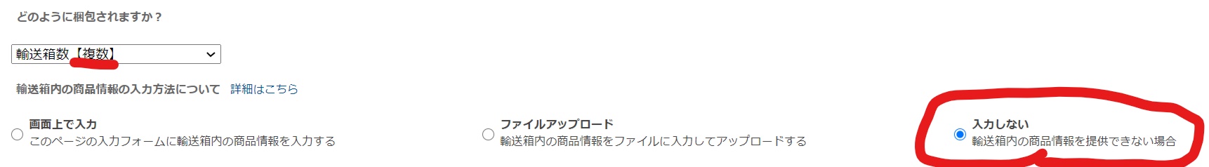 輸送箱数を複数にして、「入力しない」にしたら消費期限の入力欄が消えます。