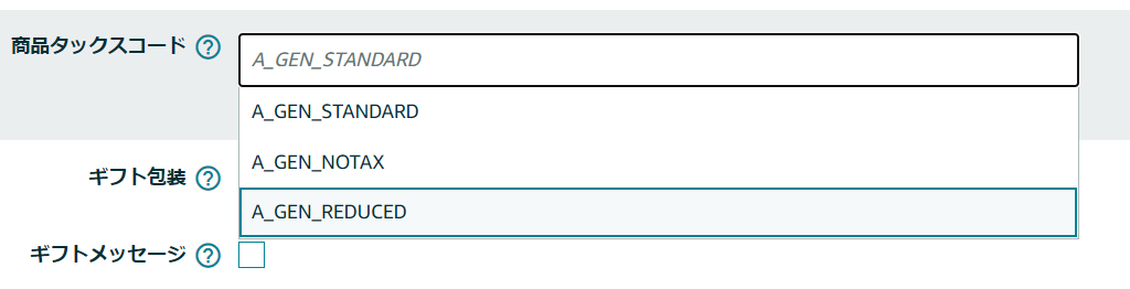 「商品タックスコード」の「A_GEN_REDUCED」を選択します。