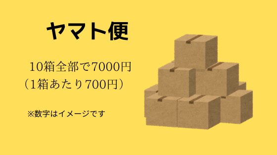 普通の宅急便は1箱〇〇円と計算しますが、ヤマト便は全箱で〇〇円と計算しますので、相対的にかなり安くなります。