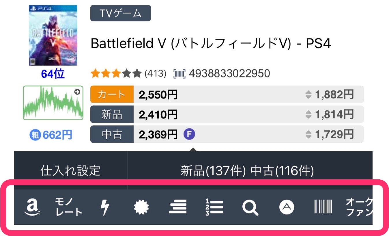 中古せどりをする人はコンディションを絞って価格を表示できる機能は絶対に必要です。