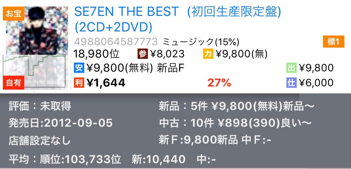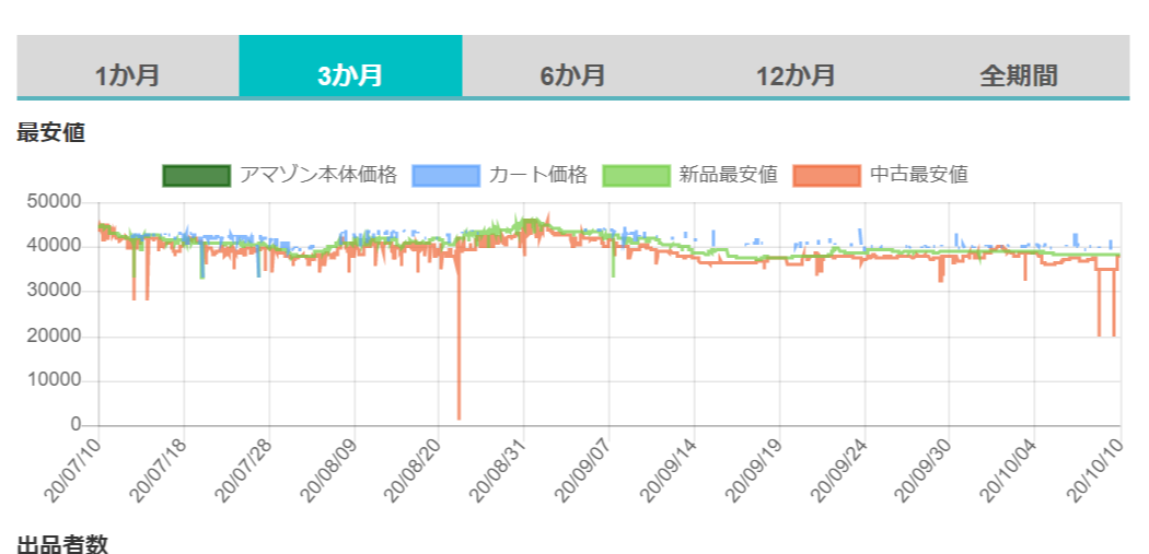 「カート取得者なし」まで取得できるのも興味深いです。(おそらく定価以上になったのでしょう)