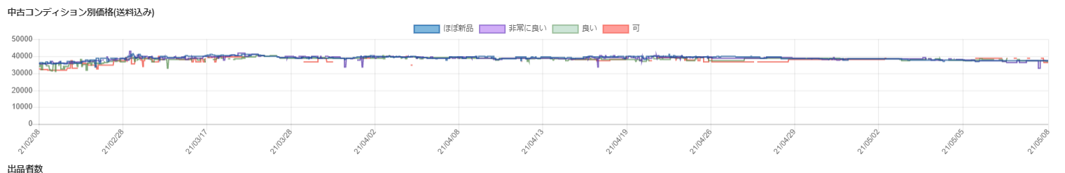 そして、2021年3月のアップデートで中古コンディション別グラフが見れるようになりました。