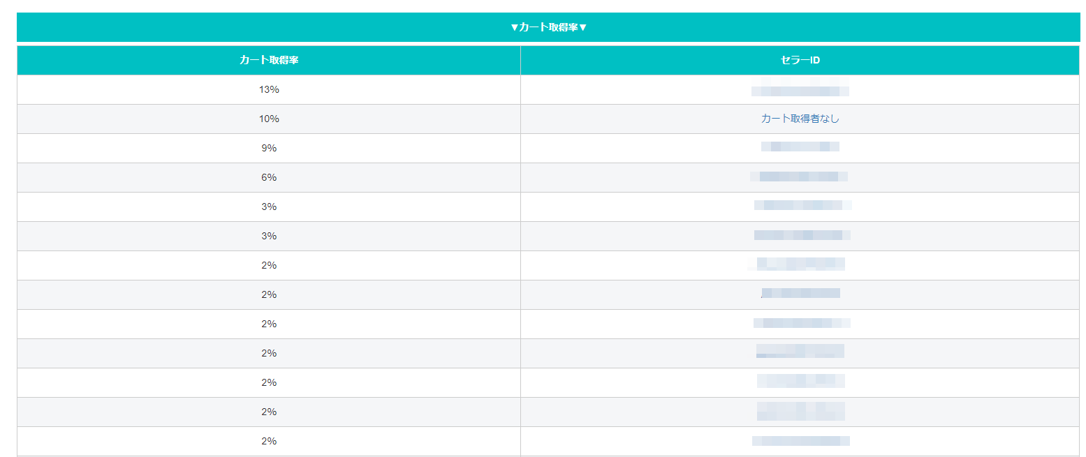 これ意外と画期的です。カートの取得率がセラーIDでわかります。