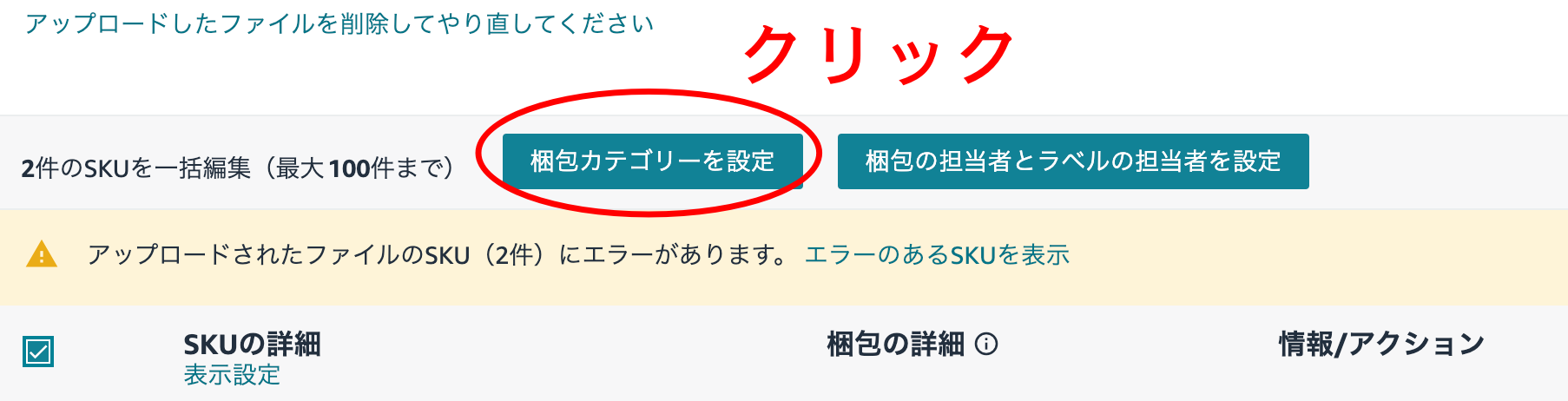 そしたら急ににょろってボタンが出てきます。「梱包カテゴリーを設定」をクリックしてください。