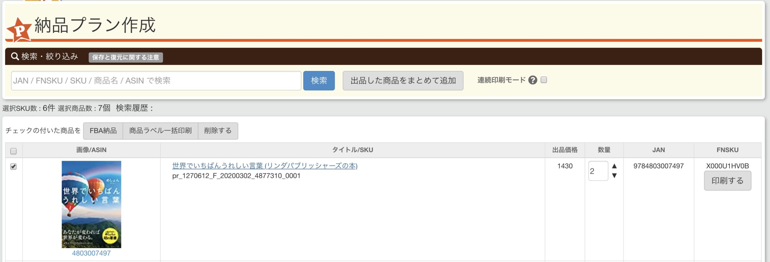 プライスターだけ唯一SKU、FNSKU(商品ラベルのバーコード)から納品プランを作れます。