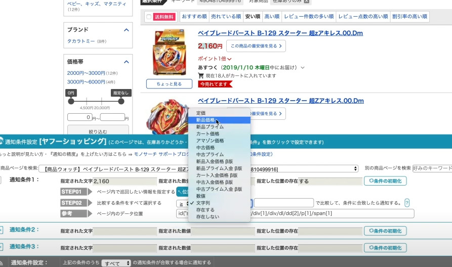 価格だけでなく文言の変更などかなり細かく通知を設定できます。