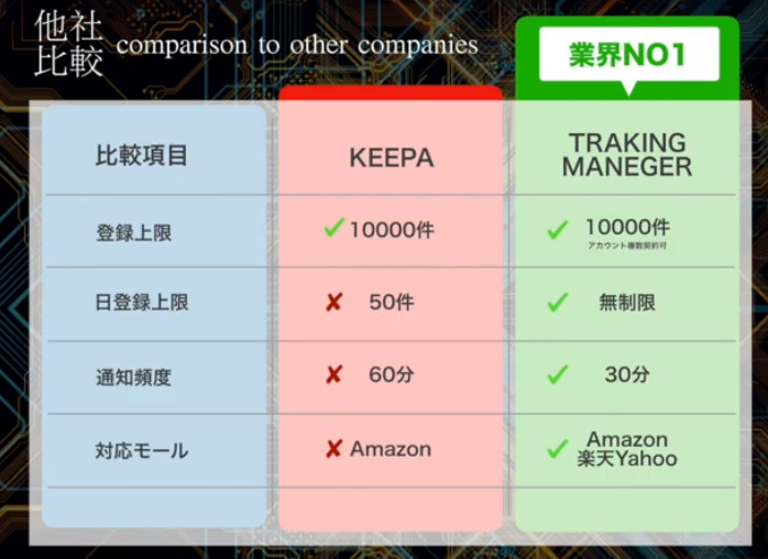 実はトラッキングマネージャーの機能は無料で課金もせずにKeepaでできます。
