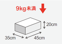 45cm以下×35cm以下×20cm以下に一辺でも満たしていないと大型サイズになります。