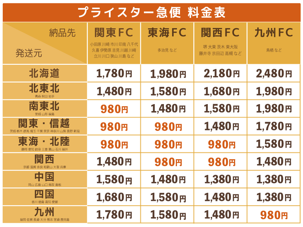 全て全国一律なのが使いやすいです。