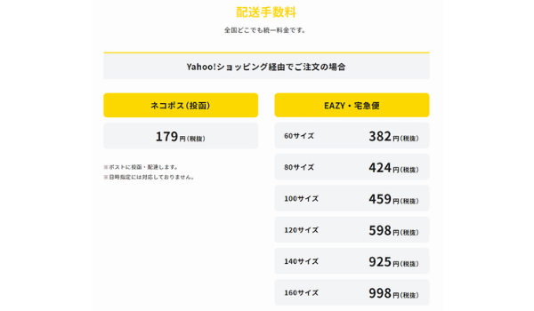 | 宅急便コンパクト※専用資材は別途購入70円 | 全国一律380円 | 送り先によって異なる(例:関東から関東で605 円) |