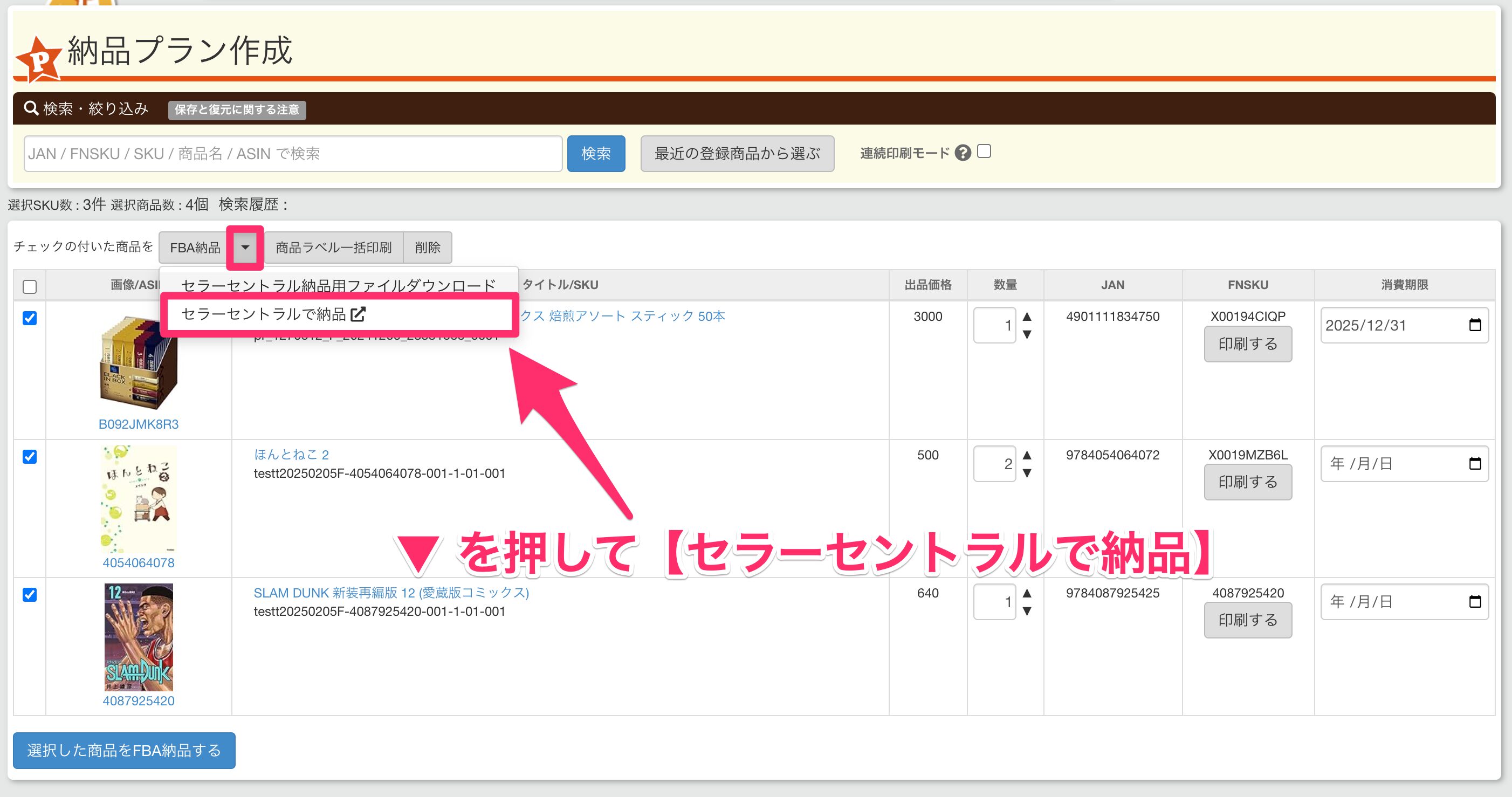 ただファイルはSKUと数量なので、SKUをコピペし続けるのはやりにくいです。