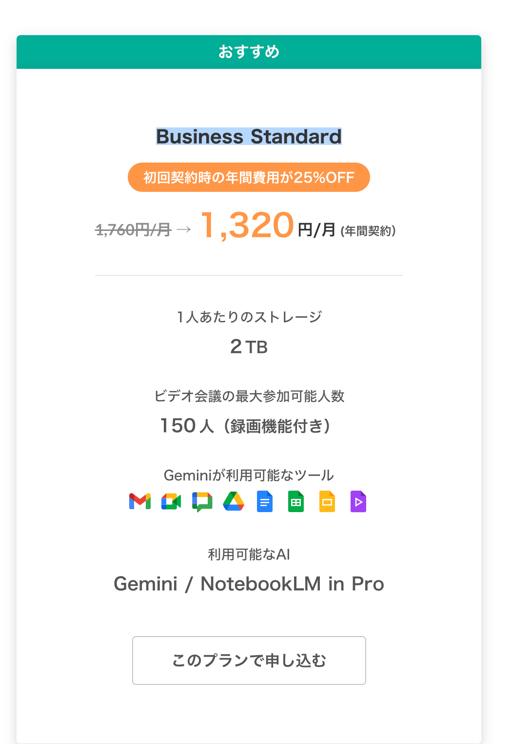 Googleからも直接入れますが、なみのりはムームードメインでGoogle Workspace契約しました。